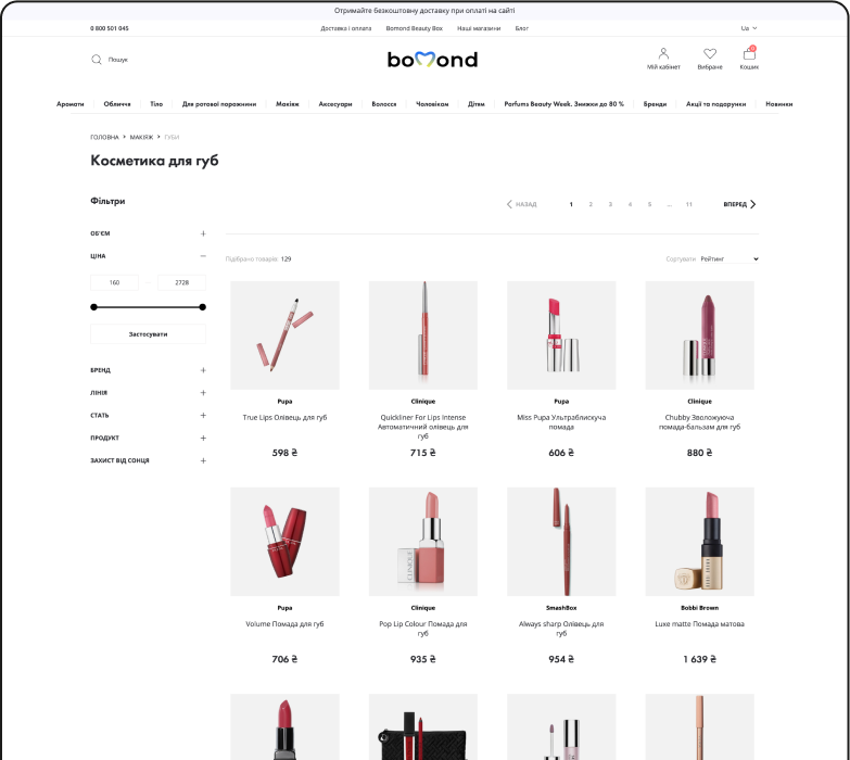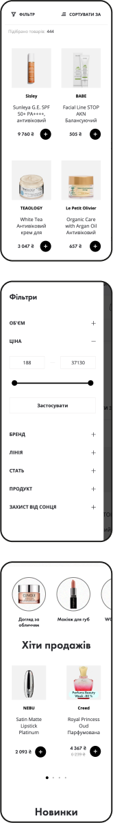 - Спрощений процес вибору товару за допомогою зручних фільтрів