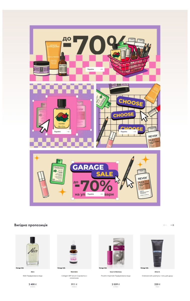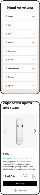 Результат:Ми отримали продуманий до дрібниць продукт, легкий та світлий інтерфейс, який підкреслює унікальність бренду та водночас не відволікає користувача від покупки.