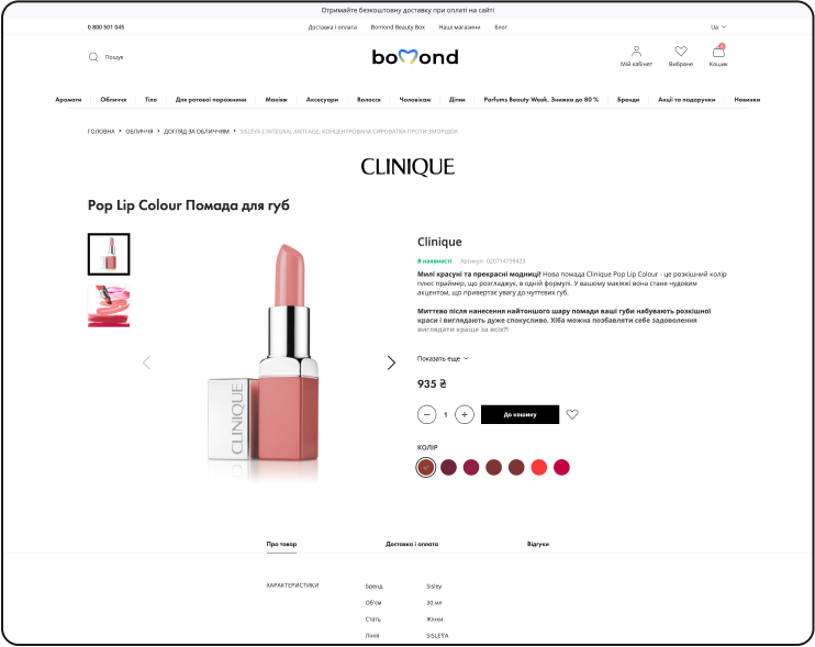 - Акцентували увагу користувача на товарі та його конфігураціях
