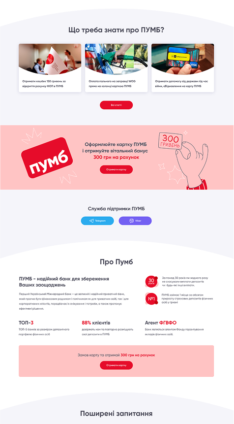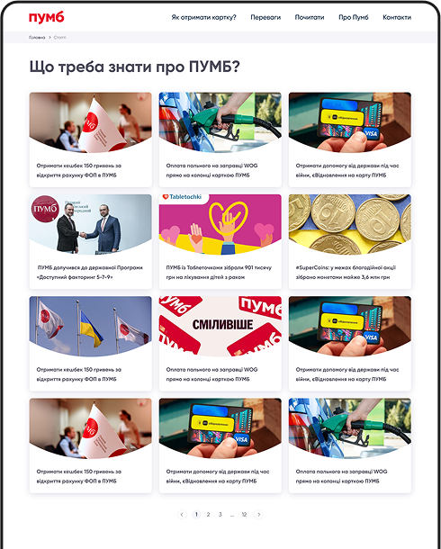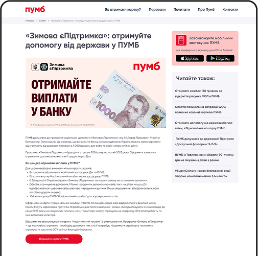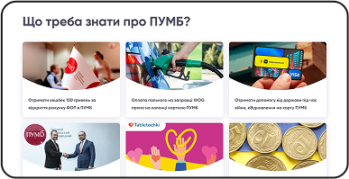 Про проект:"Бонус від PUMB" є централізованим джерелом актуальних новин, умов участі та пропозицій, що дозволяє клієнтам бути в курсі всіх можливостей для накопичення та використання кешбеку.