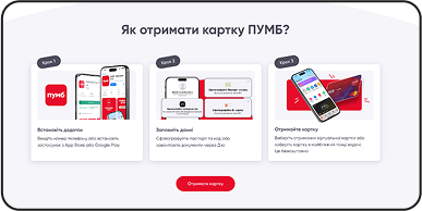 Блок з покроковою інструкцію оформлення картки банку