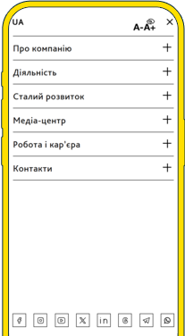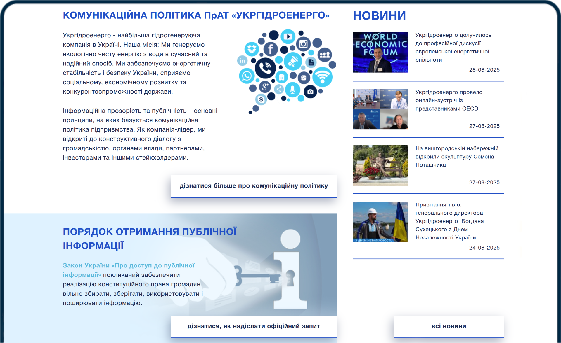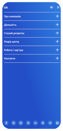 Пов'язує сайт із зовнішніми платформами, дозволяючи користувачам стежити за новинами компанії та підтримувати взаємодію за межами сайту.